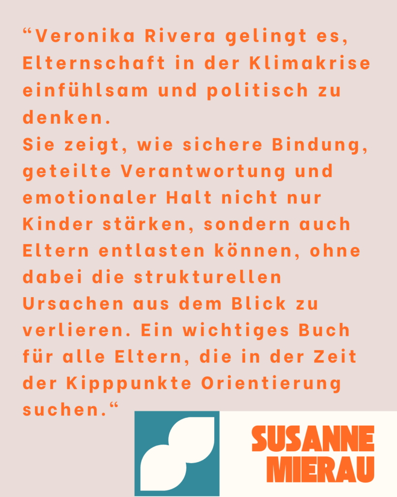 Das Buch ist keine Theorie, sondern praxiserprobt, feinfühlig und empowernd. Es umfasst Impulse zur Selbstfürsorge, Klimaresilienz, mentaler Gesundheit, kindlicher Entwicklung, ökologischer Elternschaft und konkreter Alltagsbewältigung. Mit zahlreichen Übungen, Reflexionsfragen, Beispielen und ehrlichen Gedanken zu Überforderung, Wut und Verbindung.